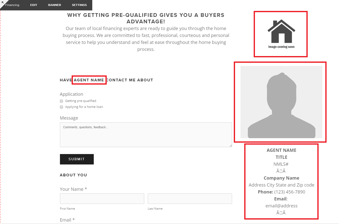 The Financing page is an additional page for the client’s lender partner. Not all sites created have a lender or any lender information so you have to check the ticket for any details about this.